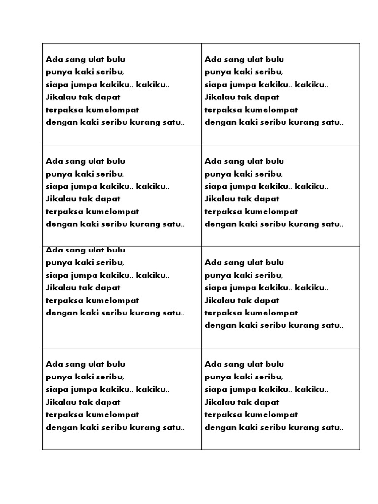 LAGU SANG ULAT BULU ADA SANG ULAT BULU PUNYA KAKI SERIBU SIAPA JUMPA KAKIKU KAKIKU JIKALAU KU TAK DAPAT TERPAKSA KU MELOMPAT DENGAN KAKI SERIBU KURANG SATU. Ku cubit dua bola matamu. Up to 30 cash back 301 Moved Permanently.